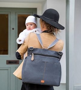 The PacaPod Firenza bag is an innovative diaper bag that gives you different “pods” for feeding and diapering, to keep them separate when you’re out of the house. “Once your baby is born, you’ll want to save your favorite sleek handbag for non-kid outings and find a stain-proof, ergonomic, multipocket carryall bag that you can take with you everywhere.